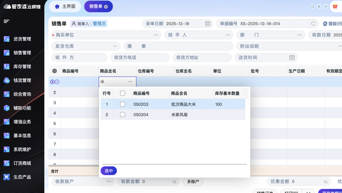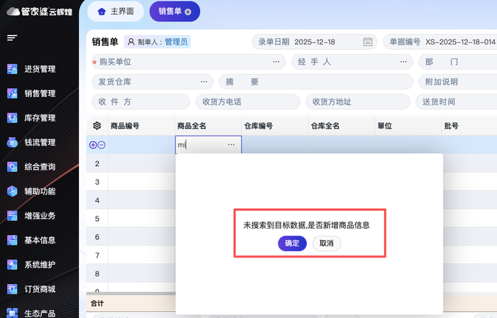 管家婆云辉煌重磅更新!专治开单“手忙脚乱”,告别数据“心惊胆战”发表时间:2025-12-18 10:24 ![]() 还在经历这样的“抓狂”时刻吗? 客户电话催单,你却在商品列表里疯狂翻找,急得满头大汗… 精心录入半小时的订单,一个误操作页面刷新,瞬间“灰飞烟灭”… 对着客户发来的采购清单,只能“手动搬运”数据,生怕抄错一个数字… 催款、对账、打单…流程繁琐,仿佛永远有忙不完的琐事… 我们懂您的疲惫!!! 管家婆云辉煌此次更新直指这些核心痛点,用一系列“聪明” 功能,将您从繁琐中解放,真正实现高效、省心、无忧的管理! 01 云辉煌重磅更新:让管货、开单、收款全流程智能升级 一、商品录入:智能联想,一键上新 痛点:开单时找商品要找半天,库里没有的商品还得退出单据、手动新增,流程中断,效率低下。 解决方案:智能下拉匹配与快速新增